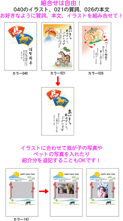 お好きな組合せでオリジナリティな年賀状を作ってみませんか?